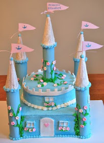 I decorated this princess castle cake for my neighbor (and great friend) daughter's "princess and knights" themed 5th birthday party.